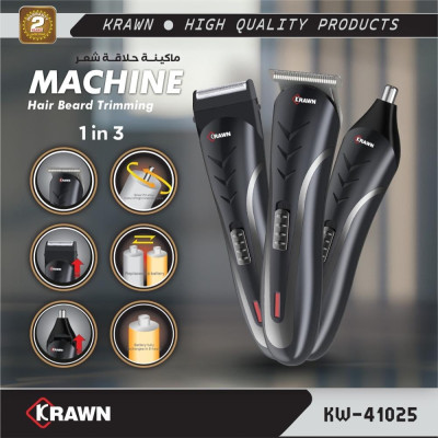 ماكينة حلاقة الشعر واللحية 3 في 1 من كراون لحلاقة الشعر واللحية. هذه الماكينة العصرية والعملية تجمع بين الأداء العالي والتصميم الأنيق لتقدم لك تجربة حلاقة سهلة ومريحة في المنزل.