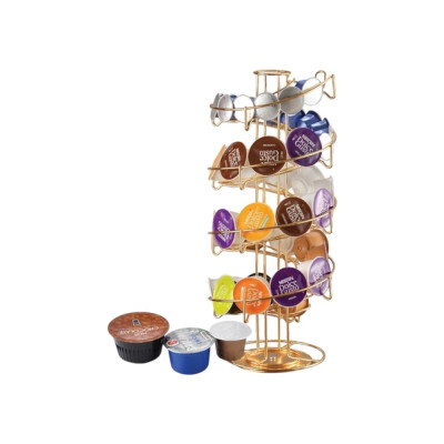 حامل كبسولات أنيق وعملي بتصميم دائري دوار، مثالي لتنظيم وعرض مجموعة متنوعة من كبسولات القهوة. لونه الذهبي الفاخر يضيف لمسة من الأناقة إلى أي ركن قهوة، كما أن تصميمه الذكي يوفر مساحة على سطح المطبخ.