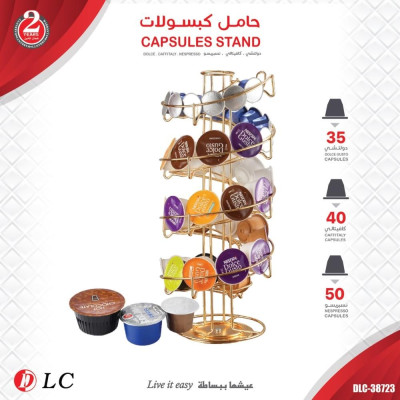 * تصميم متعدد الاستخدامات: هذا الحامل مصمم خصيصًا ليناسب أنواعًا مختلفة من الكبسولات، مثل دولتشي غوستو (35 كبسولة)، كافيتالي (40 كبسولة)، و نسبريسو (50 كبسولة).